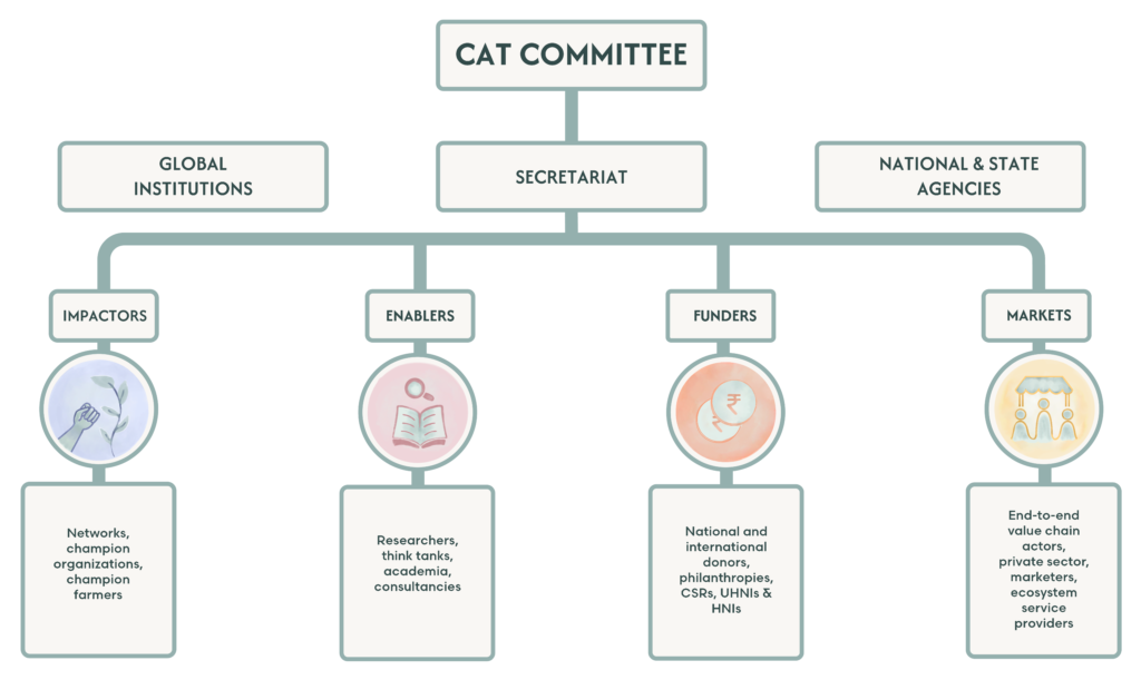 By uniting stakeholders for collaborative action, CAT envisions a transformative journey for the nation’s agricultural landscape. Our goal is to tackle pressing challenges like climate change, nutritional insecurity, farmer debt, biodiversity loss, and resource degradation. Through a united effort, we aim to facilitate a substantial shift toward agroecology-driven farming practices that further fair and equitable food systems, benefiting all stakeholders, from growers to consumers.